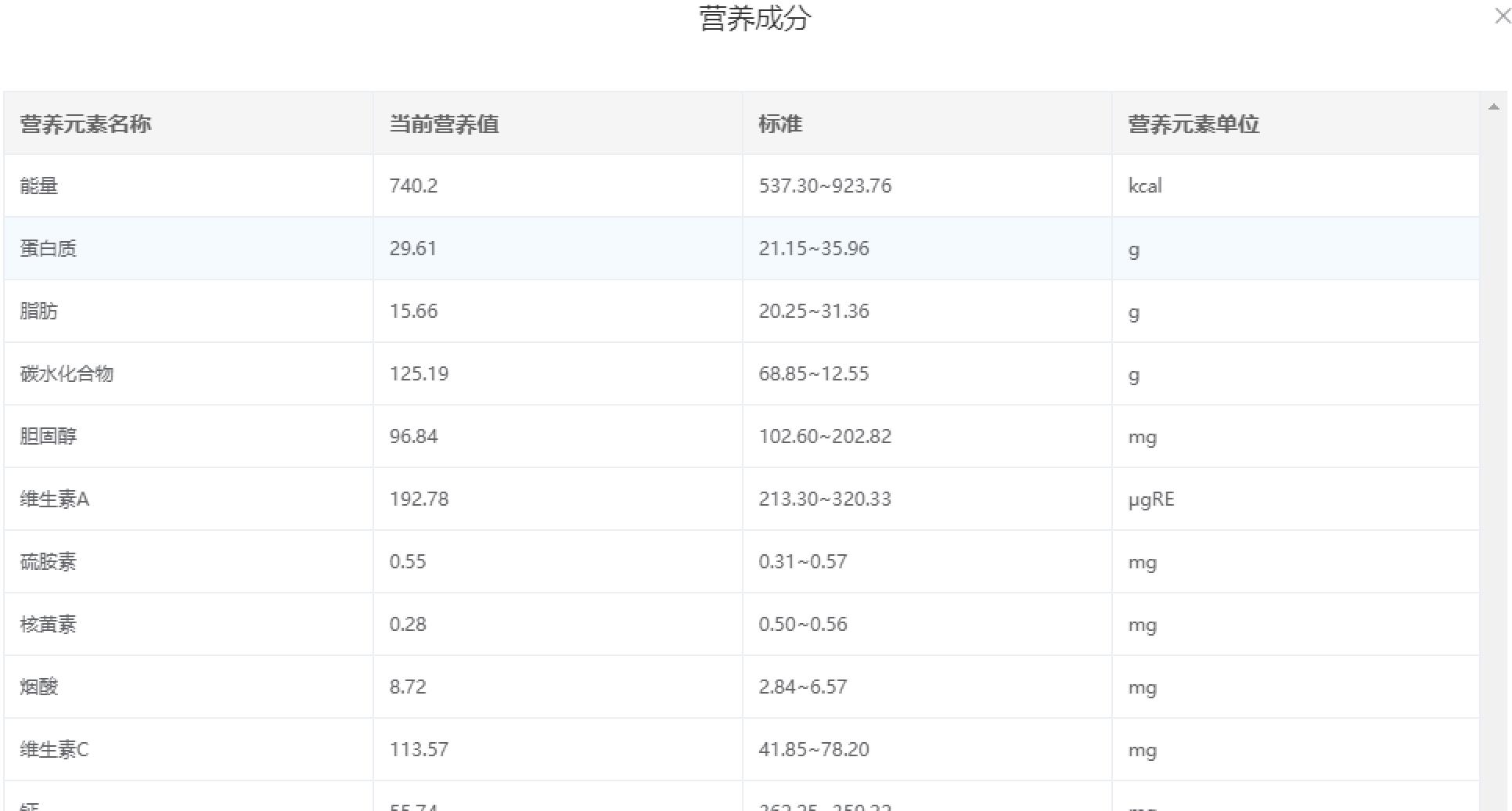 及時預警菜品營養元素和食材類別搭配不均的問腿,方便營養專員及時加以應對。