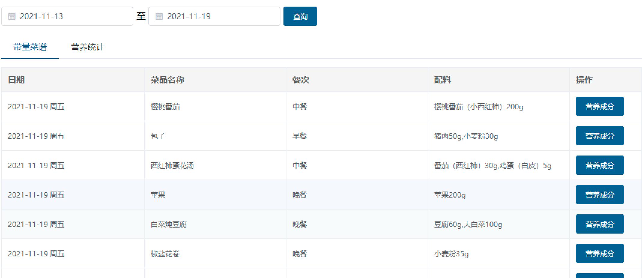 通過系統模型,自動計算出每日菜品所含的十幾種營養元素含量,主要包括礦物質和維生素等。微量營養素雖然需要量少,但在幼兒園、中小學生成長過程中發揮著重要的作用,缺乏或過量都會引起疾病,所以膳食搭配中易不可忽視。